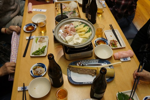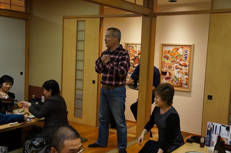 参加者は28名、 小田急線町田駅を降りて5分。「魚一丁」で鍋料理と タラバ蟹・ズワイ蟹 鳥と魚のの唐揚げ、野菜サラダなどの料理が並びました。